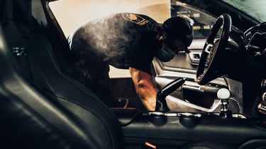 Nous utilisons des produits adaptés à chaque surface : tissus, plastiques, cuir, carrosserie et jantes. Avec des machines professionnelles pour le nettoyage de véhicule